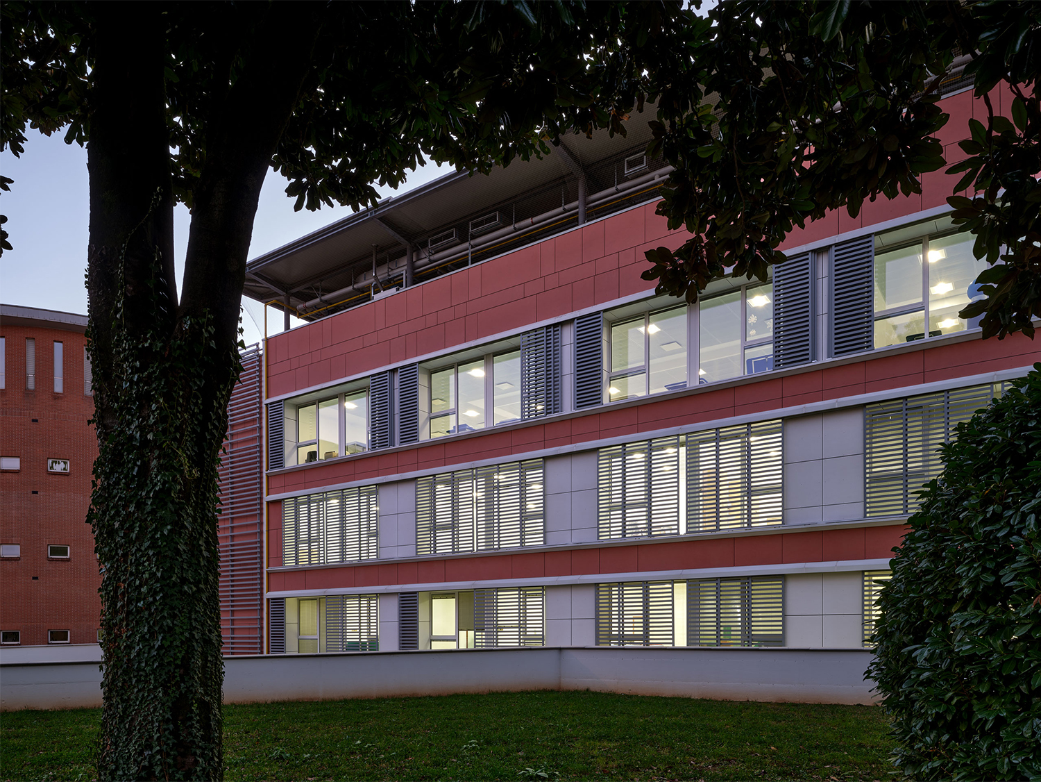 MATE, in collaborazione con lo studio Zingaretti, STEAM e lo studio Puntel & Capellari, ha guidato la progettazione e la direzione lavori del nuovo blocco ospedaliero, per un totale di circa 6.000 metri quadrati di superficie utile. Articolato su cinque livelli distribuiti intorno a una corte centrale coperta, il nuovo edificio ospita diversi servizi, tra cui la Terapia Occupazionale, la Pneumologia Riabilitativa, l’Unità di Riabilitazione delle Turbe Neuropsicologiche Acquisite, la palestra riabilitativa dell’Unità Gravi Cerebrolesi, le palestre della riabilitazione generale e dell’unità spinale.