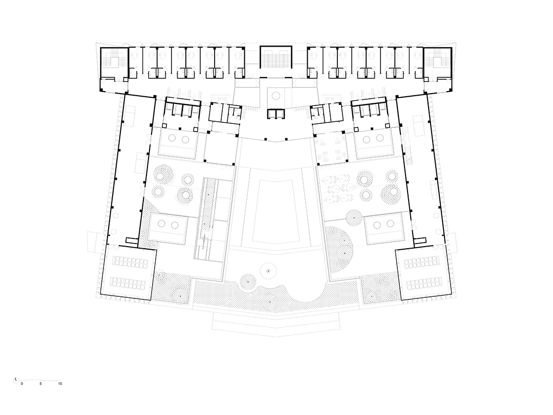 L’ala nord si apre alla luce naturale, le sale di attesa, le terrazze attrezzate per i degenti e gli operatori sanitari si affacciano sul mare, in un dialogo di costante contatto visivo con la Costiera Amalfitana.