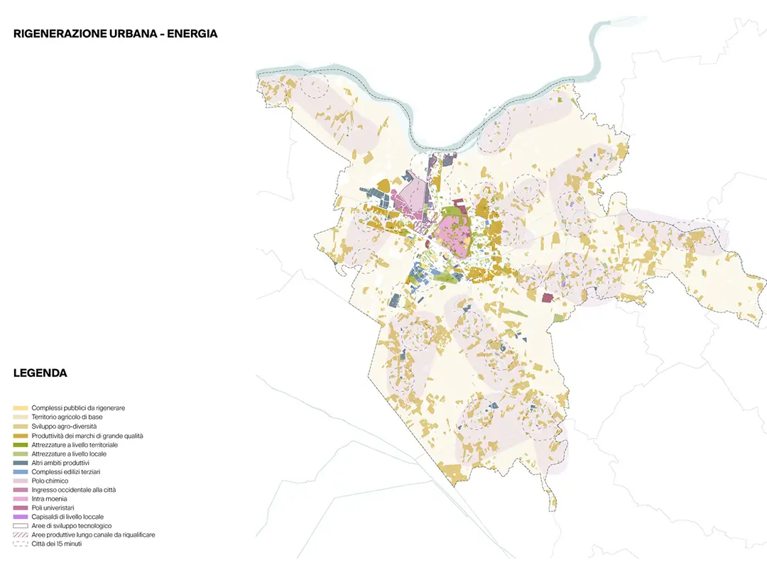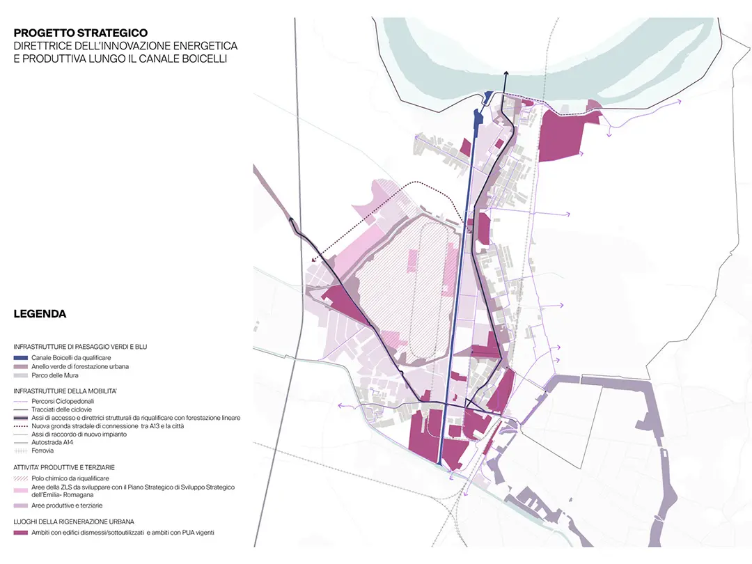 – lo sviluppo di un sistema infrastrutturale hard e soft, finalizzato da un lato a valorizzare il Polo Chimico e, dall’altro, a potenziare la mobilità urbana sostenibile a servizio dell’intero territorio urbanizzato, affiancato da nuove reti digitali ed energetiche;