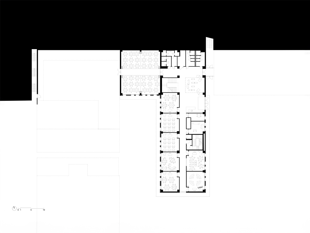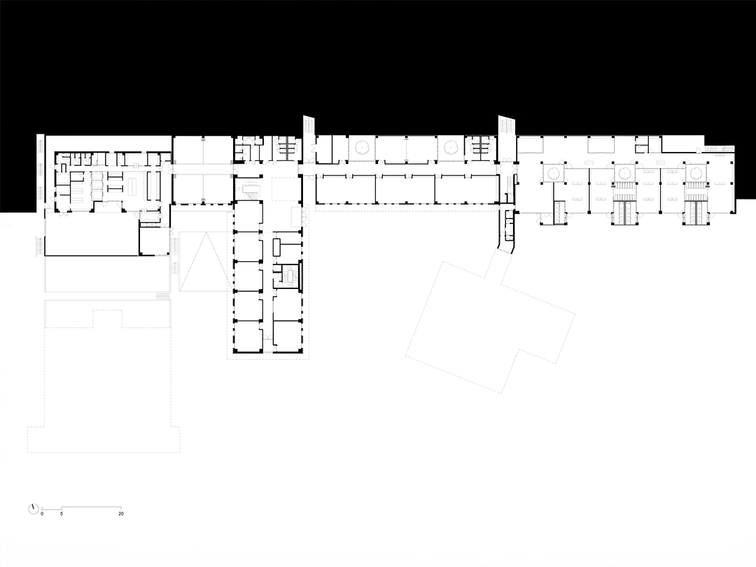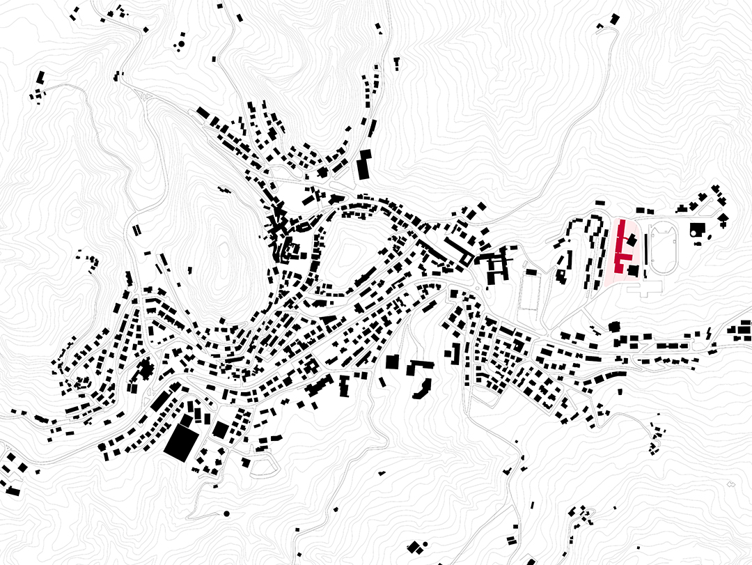 L’intero intervento è stato guidato dalla configurazione orografica del terreno in forte declivio e dalla necessità di avere un edificio costruibile per parti senza andare a compromettere la continuità delle attività didattiche durante tutte le fasi di cantiere.