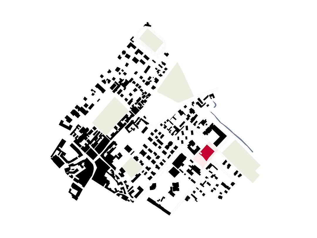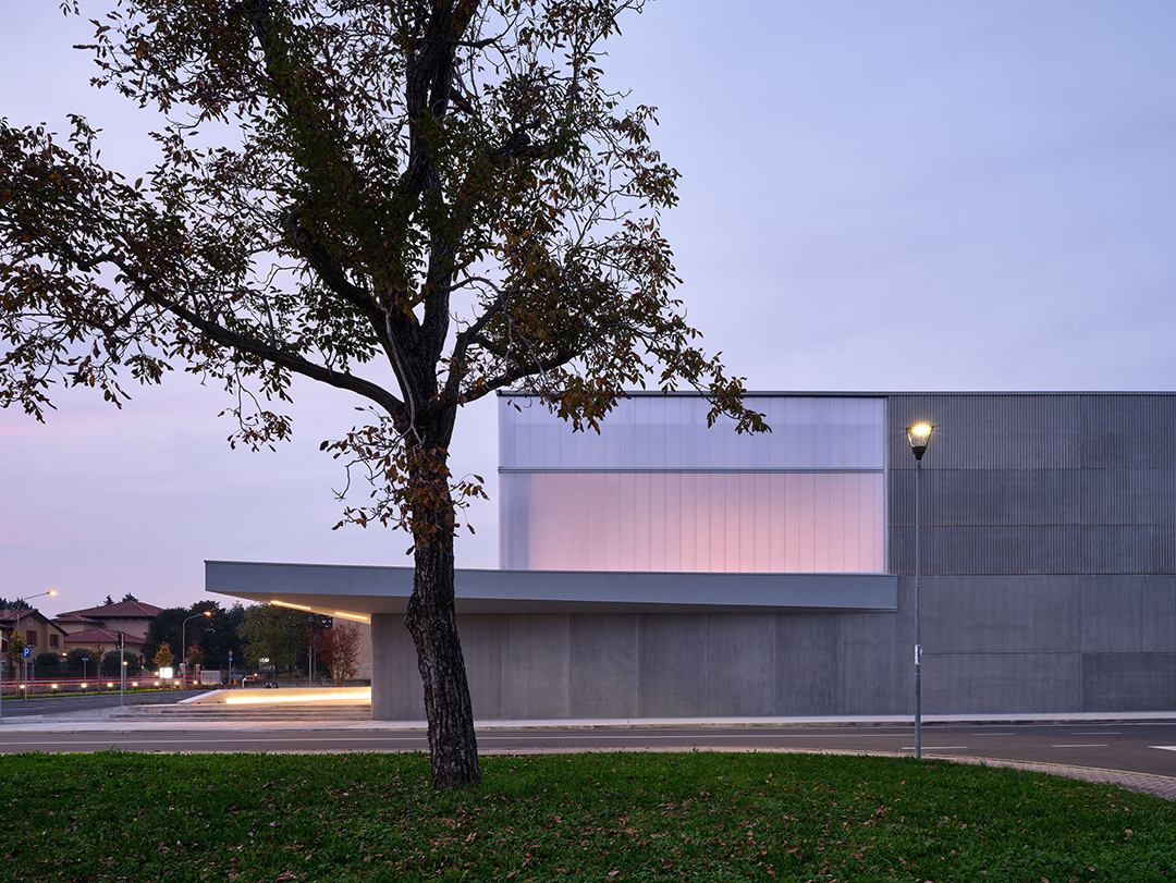Il progetto non vuole essere una semplice estensione del tessuto urbano esistente; la sua funzione è “integrare” piuttosto che continuare il contesto locale. La lanterna, totem luminoso all’angolo tra via San Gaetano e via Milano, sottolinea il ruolo strategico dell’edificio nel circuito sportivo comunale.